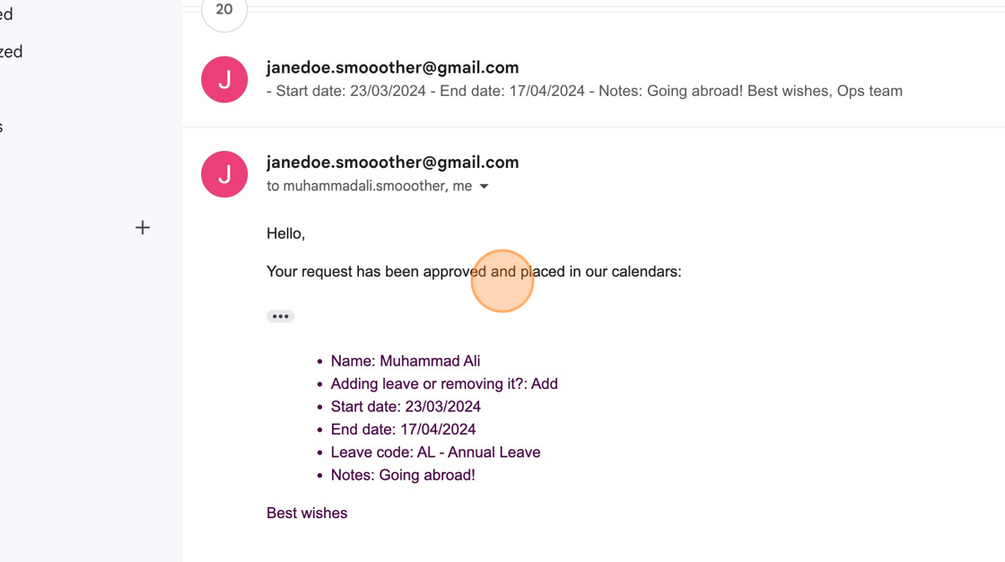 - Leave dates are sent in a summary email to the staff member's line manager with a simple interface to accept or decline with a follow up